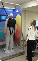 平衡训练评估系统通过NILSI(近红外线镭射光散斑成像)BodyreCOGNIzer技术,感应躯体25个部位的位置,实时反馈整个躯体的3D平衡状态,分析身体姿势稳定性,完全突破了旧式平衡检测装置“单点”+“平面”的检测方式。 有别于传统平衡躯体感应装置,BodyreCOGNIzer不需要在患者身上安装或捆绑任何感应装置,对患者的着装、环境光线也没有任何要求,最大限度地扩展了其适用范围。压力感应技术